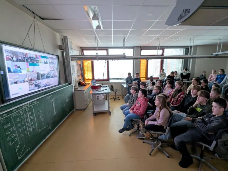 Ein emotionaler Höhepunkt bildete schließlich die Präsentation von Bildern eines Baby-Pinguins, die ein stilles Staunen in allen zugeschalteten Klassen hervorriefen. Passend dazu stellten die Schüler*innen der 6a eine weitere Frage: „Was war euer schönstes Erlebnis während der Expedition?“ Der ZDF-Reporter berichtete berührt von der überwältigenden Größe und den schimmernden Farben der Eisberge, während der Pinguin-Forscher den Moment beschrieb, als sich die Pinguin-Inseln erstmals am Horizont zeigten – zunächst als dunkle Masse, die beim Näherkommen zu einer lebendigen, wimmelnden Kolonie wurde.